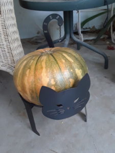 And then there is the pumpkin ‘rack’ cat. The stand was for sale at the local grocery store last year. You just have to supply a new pumpkin each year.
