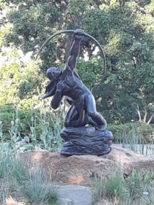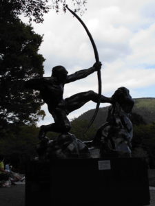I am always amused as I think he is aiming at his doppleganger on the other side of the world. Below is a sculpture at the entrance to the Hakone Open Air Art Museum in Hakone, Japan.
