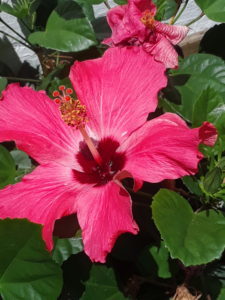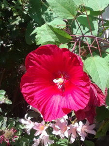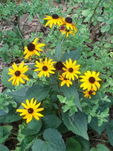 The hibiscus are still producing a flower or two daily. I never took a picture of the catmint as it’s kind of ragtag. Black-eyed Susans are doing well. I guess they should get a photo op. I also have volunteer sunflowers under the bird feeders. Not the gigantic stalked ones my neighbor down the street has (envy), but free, smallish ones which will set seed and the birds may eat, if the squirrels don’t get them first, or the missed seeds can come up next year.
