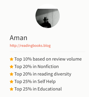 It analyses these results on the basis of what you have read so far. I am Top 20% in Reading Diversity.