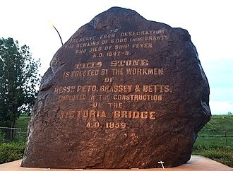 There is a Black Rock in Montreal, dredged up during the construction of the Victoria Bridge. It now marks the unmarked mass grave of hundreds, perhaps thousands, of Irish immigrants who died there and were hastily buried where they died in 1847, without service or acknowledgement; as they did in Quebec, in Ottawa, in Kingston, in Toronto, where there are similar mass graves. The Black Rock is now considered the premiere monument to the Irish experience in Canada.