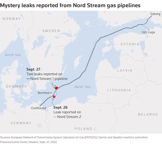 In our latest reports from the apocalypse, the Nordstream 1 and Nordstream 2 pipelines have both sprung leaks at the same moment.