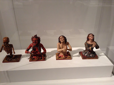 In one display box, four statues were identified as the four possibilities after death: heaven, purgatory, hell, and a skeleton to represent “the death of the body.” This was to my mind the most striking piece, and the one used for the Exhibit’s promotional materials.