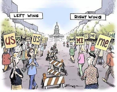 It’s been bugging me. No doubt because it looks superficially true. The right stresses individual liberty. The left stresses group identity. This looks from a distance like selfishness. Individual = self = selfishness.