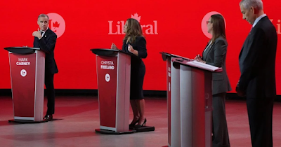 We have seen this totter and possible fall already in an exaggerated reaction to his getting one word wrong in the French debate Monday evening. He said “avec” instead of “dans”! “Carney disappoints!” “Carney cannot speak French!” “He is sure to lose to Blanchet and Poilievre in Quebec!”