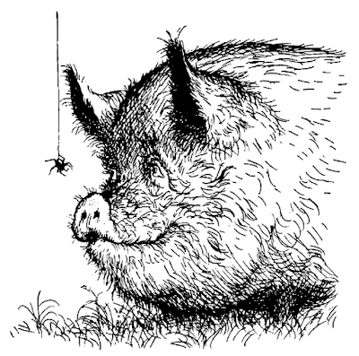 The message is that we are all horribly flawed, all animals; we all eat bacon, and slaughter. And yet we can redeem ourselves, by good works: which is to say, by gratuitous acts of friendship--and by art. Charlotte is a writer: “a true friend and a good writer” serves in the book as her epitaph. Wilbur cannot weave words as she can; but his art is his backflips. His art is the dance, and this makes him “radiant.”