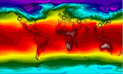 But now someone has come up with another explanation, that seems to me to make sense. The places where the virus has been particularly successful at spreading, they discover, lie along a narrow band of latitude. Or more specifically, of temperature and relative humidity. These scientists suggest that the virus needs a steady temperature of 5-11 degrees Celsius and 47-79% relative humidity to spread. All the most affected areas share these parameters.