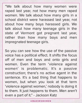 But here’s the bigger gaping maw of sexism: what about numbers for women raping men, or girls harassing boys? We apparently just start with the initial premise that either that never happens, or if it does, it does not matter. Why do we hear so much about “violence against women,” yet never about “violence against men”? Noting that, in the real world, men are far more likely to be the victims of violence than women. Some surveys suggest this is even true of domestic violence specifically. We are saying only violence against women matters.