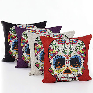 Some classy Hallowe'en decor: Day of the Dead pillows.