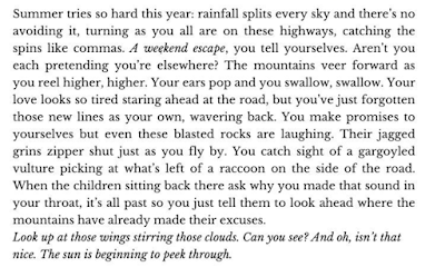 While there are, I’d say unusually for most modern poetry, no cliches, except arguably for effect (“’A weekend escape,’ you tell yourselves.”) the entire format of interior monologue is itself an almost inescapable modern cliché.