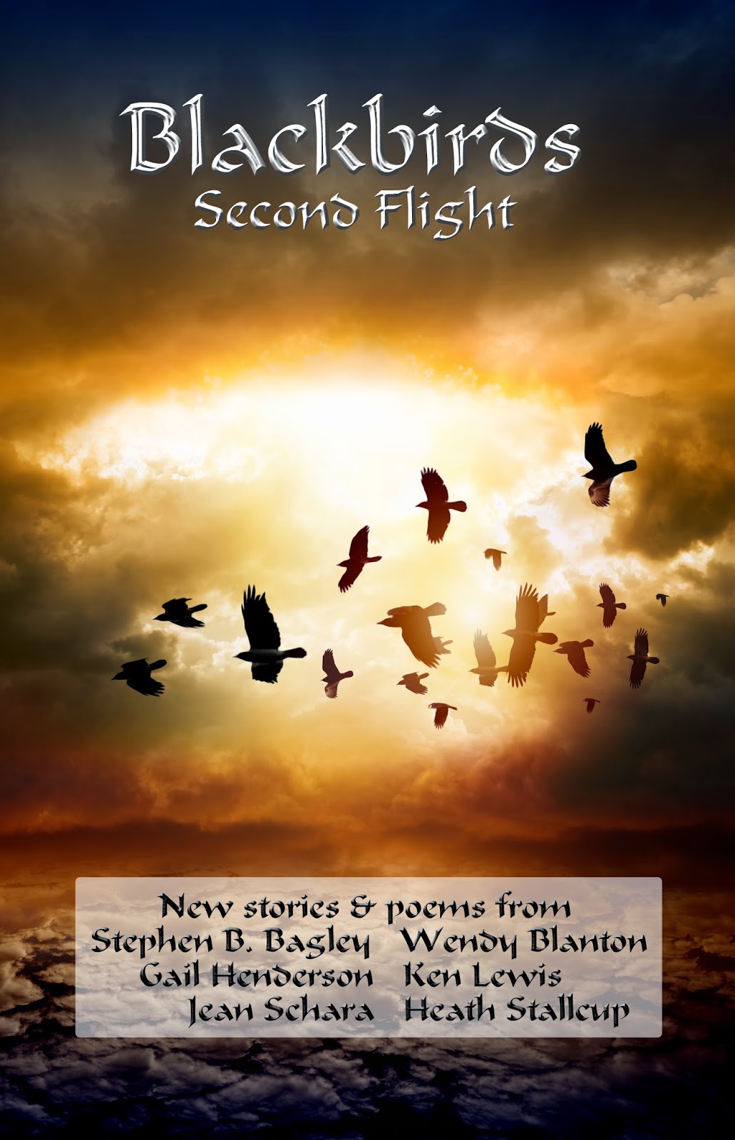 Big ebook sale! The Blackbirds Second Flight ebook is on sale for .99 cents until December 1 for your Kindle! Enjoy thrilling dark fantasy stories and chilling poems from Stephen B. Bagley, Wendy Blanton, Gail Henderson, Ken Lewis, Jean Schara, and Heath Stallcup, including a new Justina Grave mystery and a new sidhe story featuring the return of Maeve.