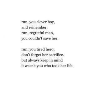 I spin around as she crumples to the ground, her silver eyes on mine. Crimson rivers fill the space between the cobblestones.