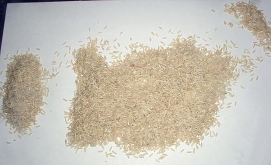 (The inner line is what I got from the rice. I then went around it with similar strokes to make it look like there was a rocky shoreline that rose up from the water.)
