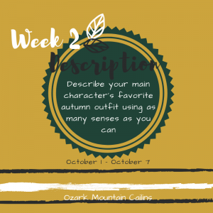 We’re starting with Leila’s final prompt: Use an adventure that happened to you in the fall as inspiration for an event in your story.