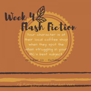 This week is flash fiction prompts, hosted by Allegra on Of Rainy Days and Stardust Veins. (Definitely check out her blog. Her writing is gorgeous.) For those of you who don’t know what flash fiction is, it’s a really short story, generally