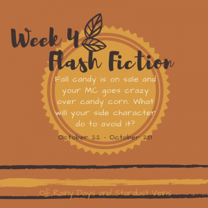 Coraline squealed as she caught sight of the sale sign. “Candy corn: buy 1, get 2 free.” A deal that cheap meant they wanted to get rid of it because no one liked it, but who cared. Coraline snatched six bags off the shelf and Wisterin recoiled.