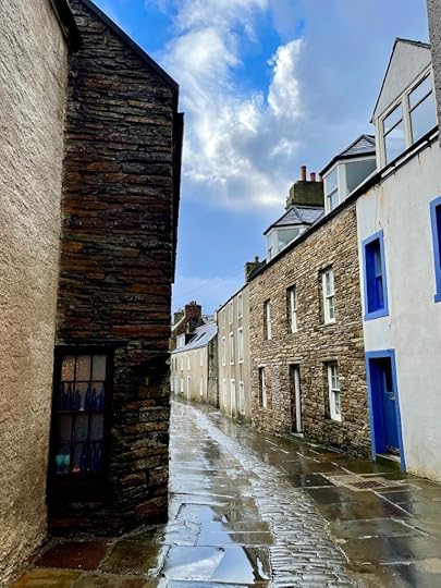 Later, I walk out on my own, up Brinkie���s Brae and then through the town of Stromness itself. It rains and sleets and hails, but I am happy.