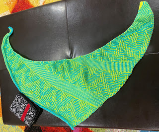 This project is actually a quick knit and mostly fun. There were some big slip stitch sections that became a little tedious, but they didn't last that long and the bind off was fun. If you're a knitter, I'd recommend this pattern if you're into small shawls/large scarves.