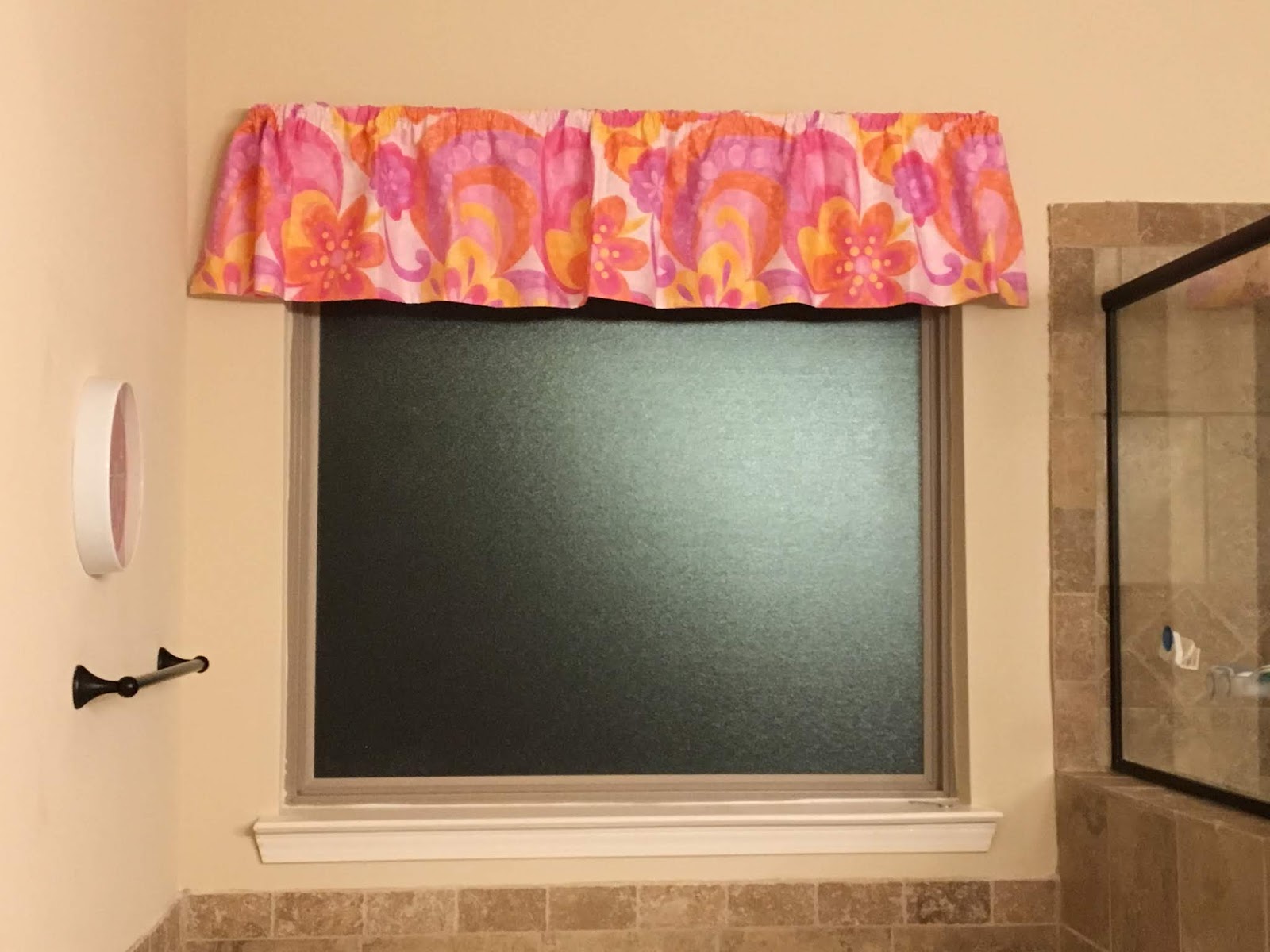Everything seemed to have gone really well. The valance I wanted up over the ugly window was perfectly positioned. The new shower head was good and not dripping. Everything was awesome.