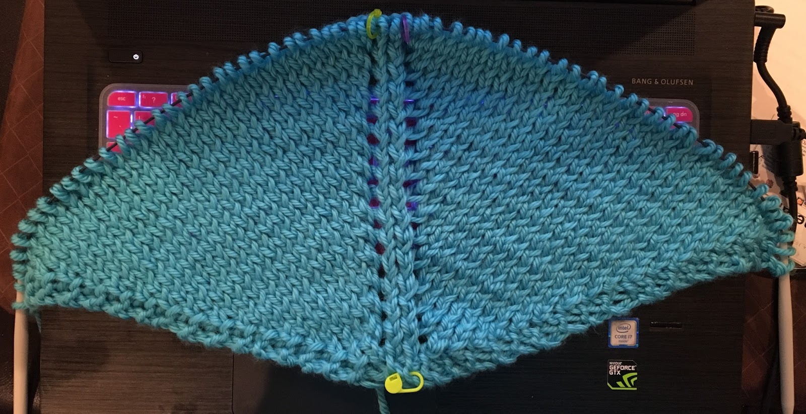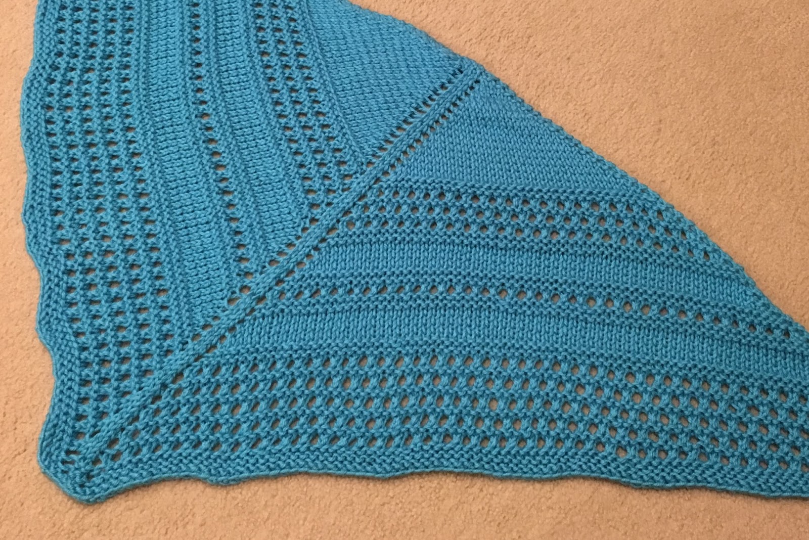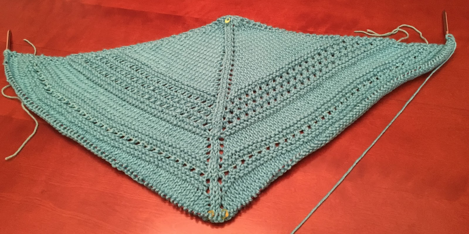 This is section one. I think I ripped it out and started over at least a dozen times. Maybe more than that. It was frustrating, but I learned how to do the garter tab start to the shawl by the time I got the entire thing right.