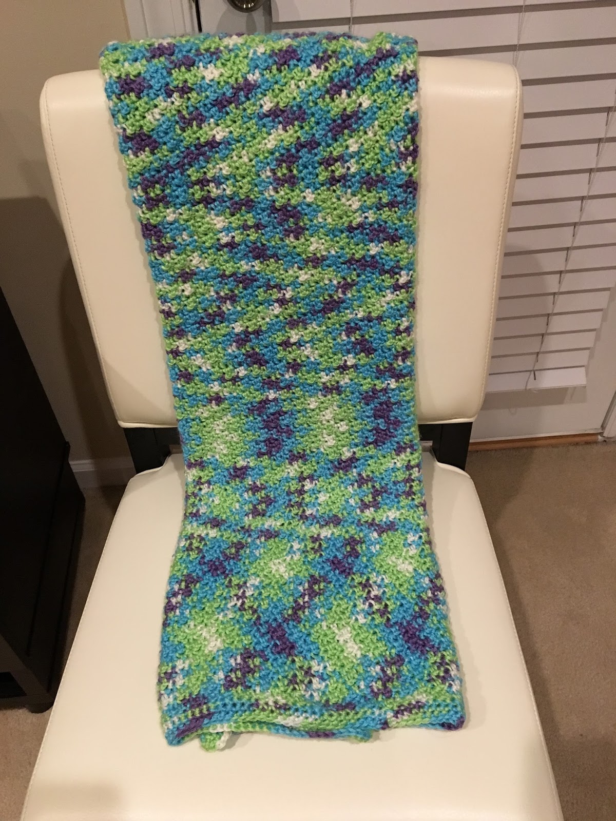 In a perfect world, I would have started making this blanket for my cousin earlier and had it ready with months to spare, however, I didn't know how to crochet until January and I wasn't far enough along in my lessons to make anything until February. I started this blanket on February 25th and finished it today, March 11th. It's only my second finished crochet project and I'm feeling very satisfied with how it turned out even though it's not perfect.