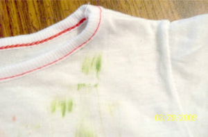 The three shirts were treated with the stain removers and laundered under warm water with a medium load of white laundry.