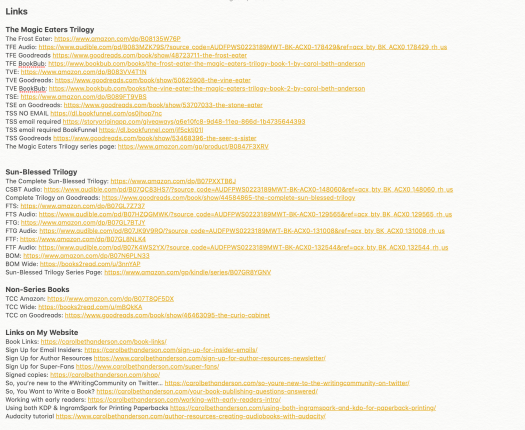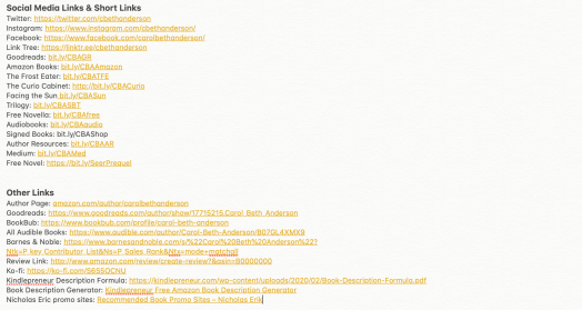 Want to be notified every time I post an Author Resource? Sign up for my Author Resources Newsletter! This is an occasional newsletter. I’ll only email you when I have a new Author Resource available or when I release a new book.