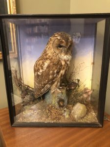 The children who came in were fascinated with it and whenever they asked if it was real I would always answer truthfully that indeed it was. They would then ask if it was stuffed, and I am afraid to say that I would answer that I had just trained it to sit very still, so please be very quiet, and that at the end of the day I would put a dead mouse in the case for it’s supper.