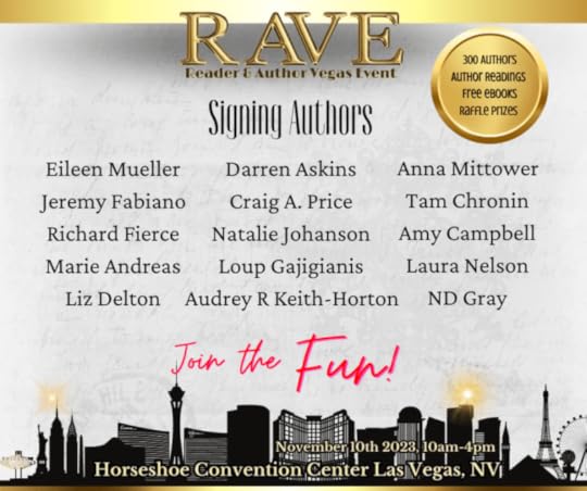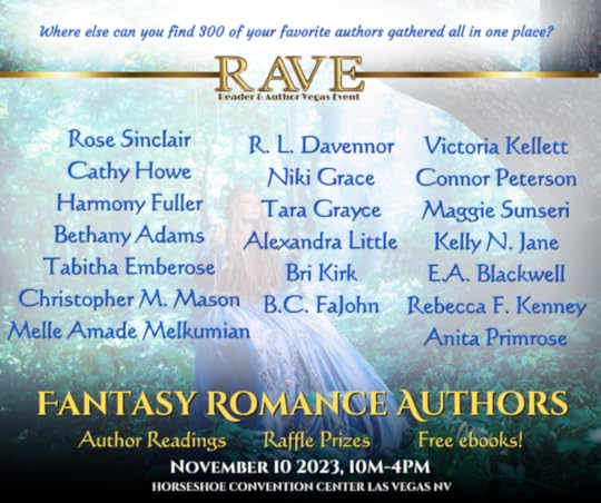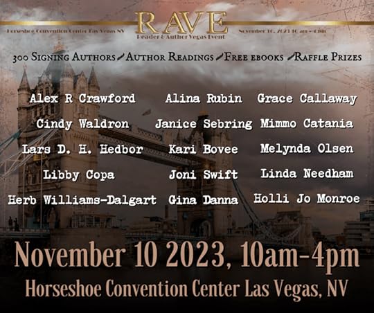 If you’re in Vegas during this time, drop in and visit. I’ll be reading and signing this year. So excited! So nervous. Would love to see you. Whether or not you’re attending the RAVE, check out the Facebook group to visit with all the authors and their books.