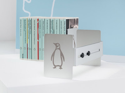 The Penguin Huddle is made from two sections of folded aluminium joined together with a sliding mechanism. It can hold between 15 and 25 books and accommodates paperbacks of all sizes.