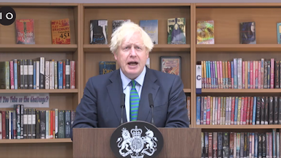In this strange new world of virtual interviews and buffering livestreams, politicians might think that a backdrop of a bookshelf helps them to look credible. But the books on display behind Boris Johnson during his speech at an East Midlands school today suggest the librarian, or perhaps a disgruntled English teacher, had other ideas...