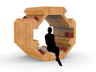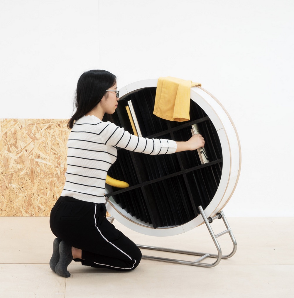Children can get books from suitable position easily by rotating bookshelf. The inside of the bookshelf is made of recycled waste bicycle rubber tyres to fix books of different sizes and to ensure the books do not fall out when rotated.