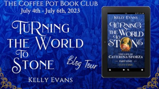 Today I’m delighted to be sharing an excerpt from Kelly Evans’s recently released novel, Turning the World to Stone – The Life of Caterina Sforza Part One 1472 to 1488, as part of a blog tour hosted by The Coffee Pot Book Club.