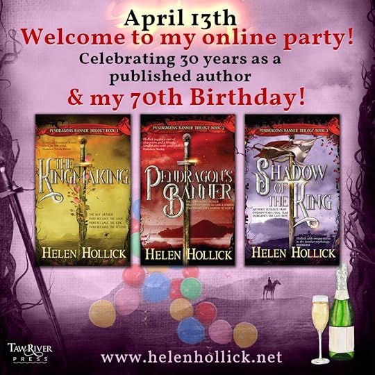Today I’m delighted to be taking part in the blog tour hosted by The Coffee Pot Book Club in celebration of the 30th Anniversary of the publication of Helen Hollick’s Arthurian novel, The Kingmaking, as well as Helen’s 70th birthday. The Kingmaking is the first book in The Pendragon’s Banner trilogy.