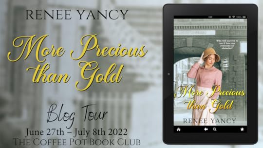 Today I’m delighted to be sharing an excerpt from Renee Yancy’s recently released novel More Precious Than Gold as part of a blog tour hosted by The Coffee Pot Book Club. More Precious Than Gold is the second book in The Hearts of Gold trilogy.