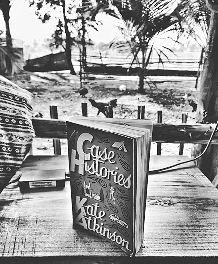 Delightful afternoon just begun at Goa's Ark, a lovely outdoor restaurant full of farm animals. (No pigs, but several chickens, some ducks, rabbits and guinea pigs. Horses also but they're out for the day.) A hen that resembles Donald Trump is hiding in the couch next to me, I have this fantastic book and also a mountain of work, but a massive lunch has made me nearly horizontal. We're leaving in two short weeks, back to cold old Delhi so trying to vary our daily routine a bit. Read Case Histories if JK Rowling as Robert Galbraith appeals to you, and also attempt to do so in similar settings. #mrmbookclub #bookstagram #150in2017 #nowreading #goanway