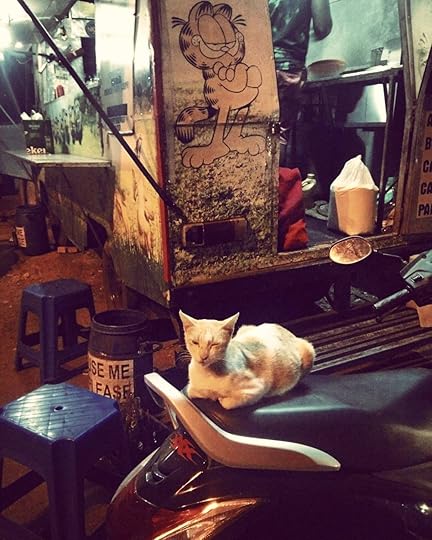 Last night, caught the Noronha's brothers just before they closed, watched loads of cars stop and ask for the way to "Anjuna" or "Baga." In the absence of a real mixer at the performance I was at before, I drank Black Jewel with water, and the world began to take on that personality too. This cat was my spirit animal. #goanway #catsagram