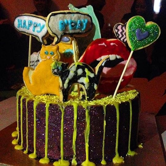 Best cake ever courtesy of @gayatrisarang. My brief to her: boozy and camp. Check out all of the details: cats, hearts, lips, balloons and somewhere in there, two books. All on top of a Boston buttercream with rum and dusted with purple glitter. Gayatri is a genius. #party #birthday #goanway