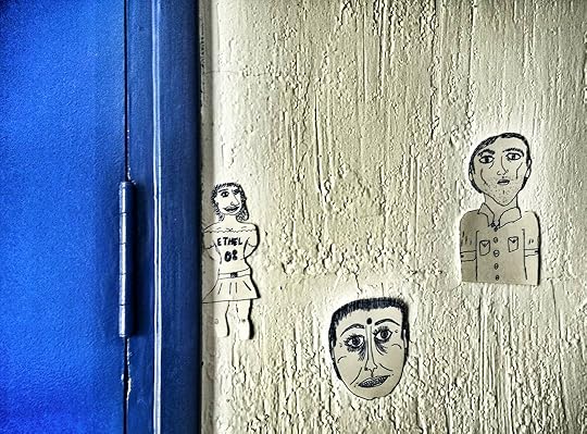 New art project. When I'm watching TV or have some down time, I doodle in a little blank book I keep on my desk. Mostly I draw pen and ink portraits of people like these ones. Yesterday, I cut around one with scissors and it looked pretty good so I decided to do more and put them up on this wall by the front door as they emerge. I know they're random, but I still kinda like them. #sketch #artproject #homeiswheretheheartis