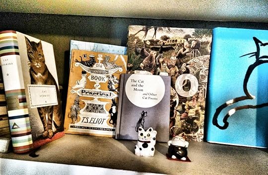 My cat bookshelf. Obviously being a cat lady, my friends give me cat things. Others I collect myself. Had totally forgotten about that gorgeous Everyman's Library edition of Cat Stories which I'm reading now with my evening coffee and which begins with the encouraging lines: what does it mean to love an animal, a pet, in the fierce, entire, and unambivalent way that some of us do? #shelfie #nowreading #250in2016 #readingchallenge #bookstagram #mrmbookclub