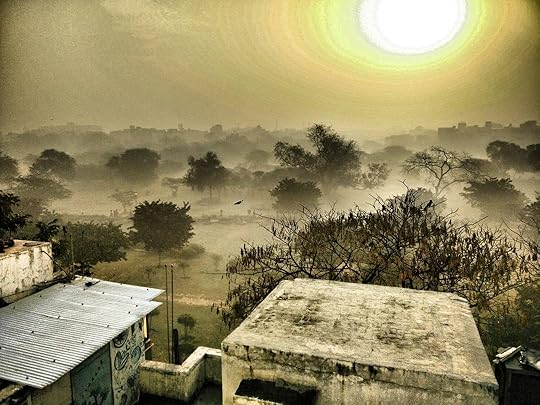 Bright and early this morning because we have no blinds yet so we're up by cock's crow (quire literally, our next door neighbours have one as a pet). Greeted by morning fog at Bijay Mandal next door which I've liberally applied filters to to make it look like a post apocalyptic situation.
