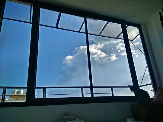 Has a weird flash flood almost of rain this morning that was loud enough to wake us up (that and a neighbour letting us know our car doors were unlocked). After about ten minutes of torrential rain, the sky is acting as if nothing happened. I'm lying in bed picking out shapes in the cloud and attempting to wake up. #nofilter