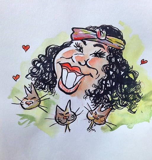Not every day that one gets a caricature done by one of the founders of Cartoonists Without Borders, Kap from Spain. Look he got my kitties in too! #sketch #TimesLitFest2015