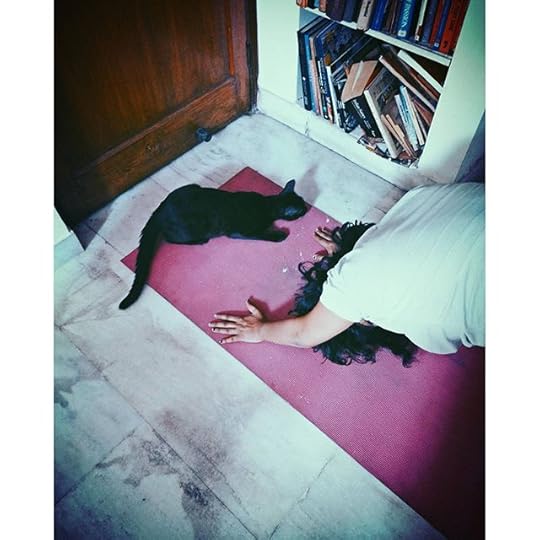 Downward dog with reclining cat. It's impossible to pull out the yoga mat without them all gathering around to plop themselves right THERE. #catsagram #yoga