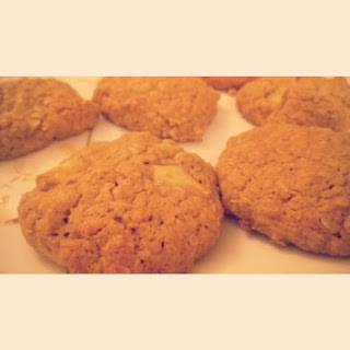 3 sticks butter or margarine, softened1cup granulated sugar1/2cup packed brown sugar1teaspoon vanilla2eggs1 3/4cups maida1teaspoon baking soda (I just pretty much always use baking powder, it's easier to find)1 1/2teaspoons ground cinnamon1/2teaspoon salt2cups old-fashioned or quick-cooking oats (I like Baggry's for this)1medium apple, peeled and shredded (about 1 cup shredded) (Um, no need to shred, just chop fine)