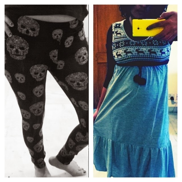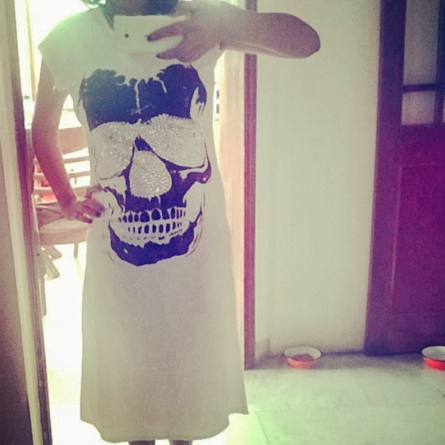 I'm debuting this maxi t-shirt dress today to a design fair thingie, but since Delhi is still being a bitch about getting warmer, I've also got on thick tights and a polo neck liner. Oh well. People can admire my neck when it's warm. Meanwhile: SKULL.