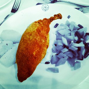 Playing with colour pop and Instagramming a plate of Chicken Kiev at the IIC