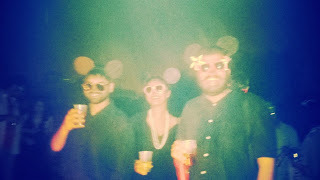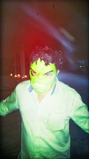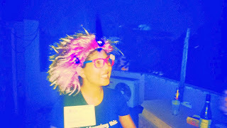 Literally, what was I? I paid tribute to some of my old-time readers, and went as an Internet Troll Doll. My t-shirt said I'm Blogging This! and I had little notecards pinned to me that said things like "U SUCK!" and "ITS PEOPLE LIKE YOU THAT GIVE HINDUS/MUSLIMS/INDIAN WOMEN A BAD NAME!" I had to keep explaining myself though--maybe the best costume is self explanatory? I did love the wig and the light up glasses.