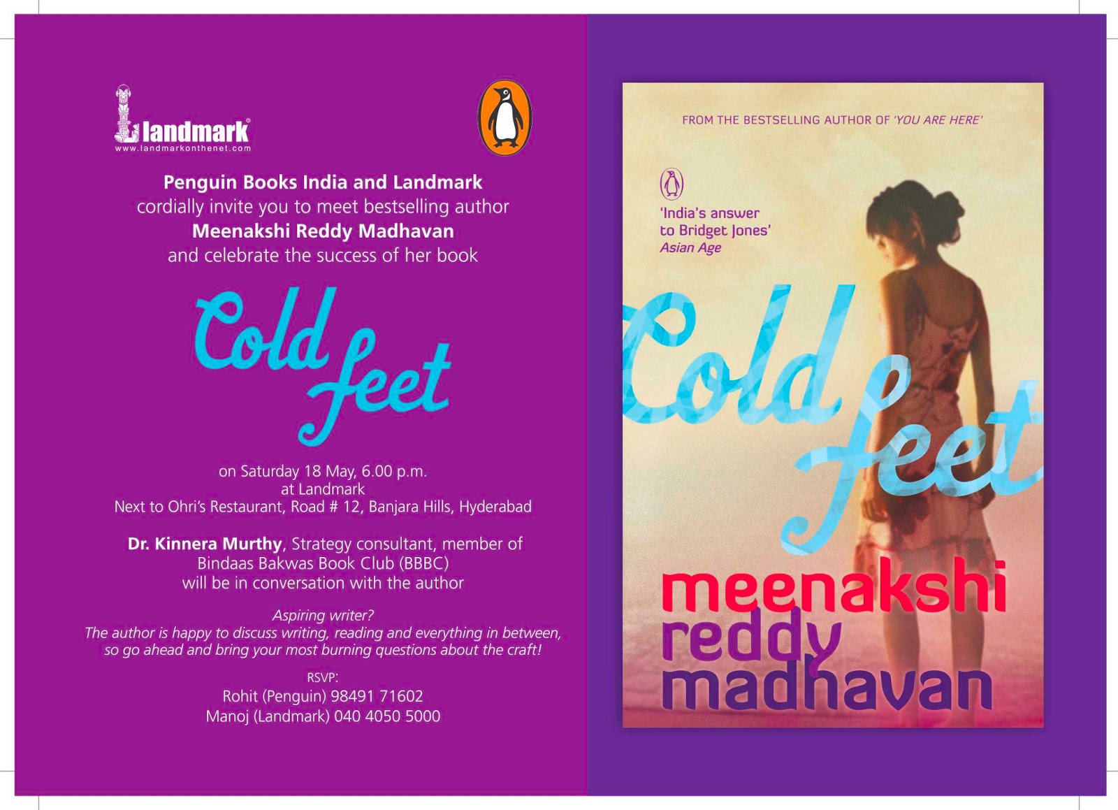 By popular (which in this case means an aunt) demand, I will be doing a reading in Hyderabad this weekend. So exciting!!