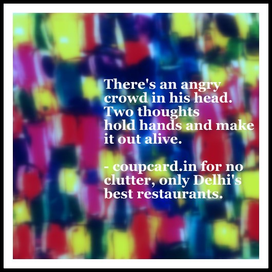You know I rarely talk about my Real Job on here, it was a policy I started ages ago, back when I was with The Tabloid, and carried over with Indian Express, who objected to employees mentioning work stuff online, and then, I guess it became a habit. But, I'm going to blur the lines here a little bit, and actually bring up what I've been completely consumed with this last month: the bpb loyalty card, called the Coup Card, you buy it, you get 15 per cent off at Delhi's nicest places. (And I don't mean generic nice, I mean I've-actually-eaten-at-them-and-love-them nice.)